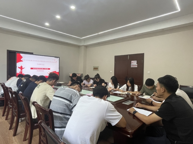 为巩固提升民族团结工作成果,做好新时期大学生中华民族共同体意识和民族宗教政策法规宣传,9月14日,体育学院本科生第二党支部全体成员在体育学院二楼会议室召开“铸守中华民族共同体意识暨民族宗教政策法规宣传”交流研讨座谈会,共同探讨并深化了对两个关键议题的理解。会议由党支部书记吴笑主持。
