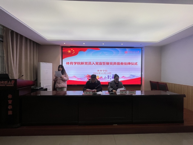 为提升新党员的党性修养和党员意识,12月15日下午,体育学院于学院东区114会议室举行新党员集中教育暨党员宿舍挂牌仪式。体育学院党委书记王允、党委副书记王芳、党支部书记及22名新党员参加。仪式由王芳主持。