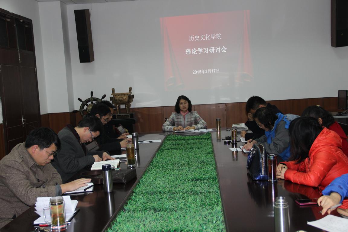 为进一步贯彻落实beat365官网2015年工作会议精神,提升学院工作水平,3月17日下午,我院在二楼会议室召开了理论学习研讨会。学院中层以上干部、各教研室主任、教工党支部书记及委员参加了会议。会议由院党委书记王霞主持。