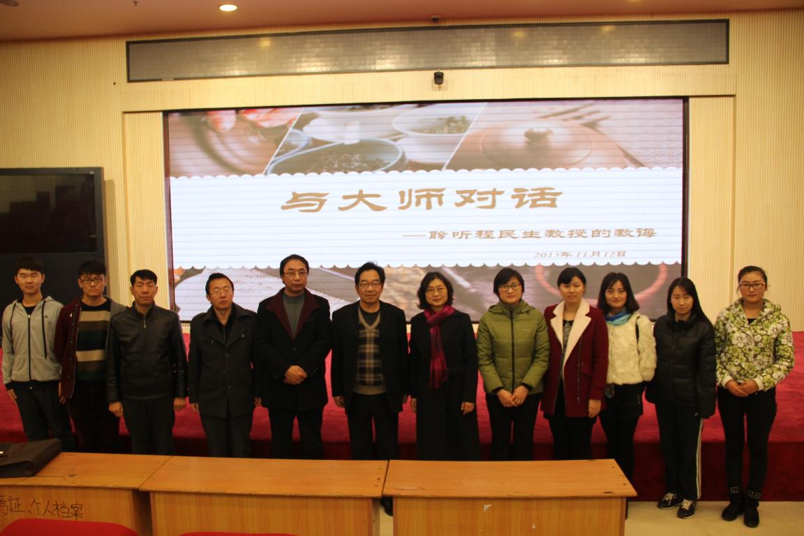 在beat365官网步入省部共建这一新起点上,历史文化学院对广大学子提出思想健康、思维创新、学习奋进的新标准、新要求。为提升学生们综合素质、专业水平与学术探索能力,激发学生创新精神,11月12日,我院举办“与大师对话”活动,邀请河南大学博士生导师程民生教授做客,为同学们提供了近距离接触学术大师的平台与窗口。院党委书记王霞、副院长李峰、各专业班主任、2013级全体本科生及研究生参与此次活动。