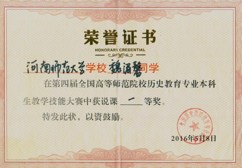 此项比赛是经教育部批准,由全国历史教师教育专业委员会主办的全国性竞赛活动,是一项代表我国师范院校历史教育本科专业教学技能最高水平的赛事,在历史教学界中具有很大影响。此次比赛吸引了来自全国76所部属及省属师范院校的228名选手参加。大赛分说课和讲课两个组别,在牛琳、马小能老师的精心培训、指导下,三名选手展现出了良好的精神风貌、扎实的专业功底和出众的教学技能,获得专家、评委及观摩比赛师生的高度赞扬。