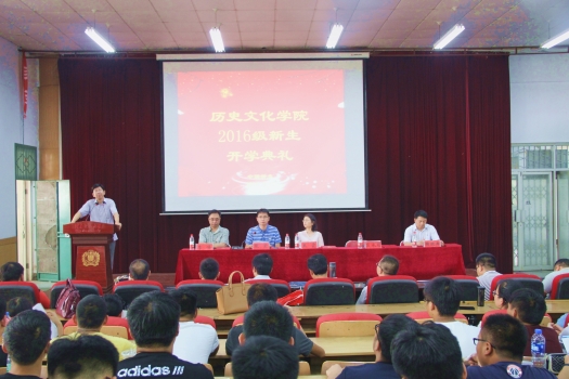 9月12日下午13:00,历史文化学院2016级迎新典礼于学苑餐厅三楼多功能报告厅庄重举行。院党委书记王霞、院长巨永明、副院长李峰、副院长鞠明库莅临典礼现场,各系主任、各年级辅导员、各专业代表老师出席本次活动。学院373名本科新生及32名研究生全体到场。典礼由院党委副书记张壬主持。