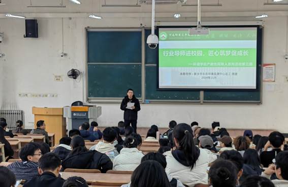 为促进本科生教育教学质量,构建有行业导师参与的育人机制,对我院学子职业生涯规划提供指导和帮助,11月19日,我院“行业导师进校园,匠心筑梦促成长”系列活动第三期在求实中楼举行。本次活动邀请河南省新乡生态环境监测中心总工周速做“生态环境监测”主题报告。学院副院长闫旭、环境工程系和环境科学系主任、专业班主任以及2024级环境类本科生共计200余人参加了本次专题讲座。