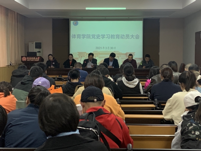 3月30日下午,我院召开党史学习教育动员大会,认真学习贯彻习近平总书记重要讲话精神,落实校党委工作安排,动员部署学院党史学习教育。会议由体育学院党委书记王允主持,全体党员教师和学生党员代表参加会议。