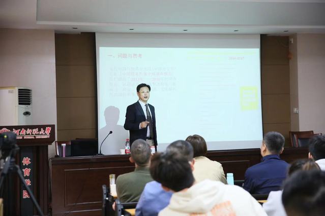4月16日上午,北京师范大学博士生导师吕韶钧教授在体育学院一楼学术报告厅为学院师生作了一场题为“娱乐时代”的文化自觉——武术与民族传统体育的社会责任与时代担当的学术报告。体育学院院长岳贤锋、青年教师代表及研究生120余人参加了报告。报告由体育学院副院长孟国正主持。