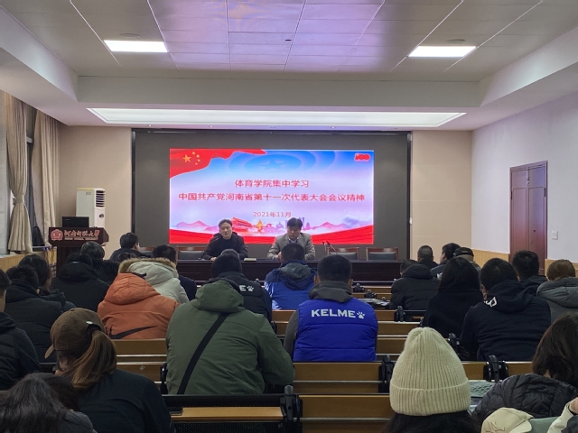 11月9日下午,体育学院在学院一楼大会议室召开全体教职工会议,集中学习河南省第十一次党代会精神。会议由学院党委书记王允主持。