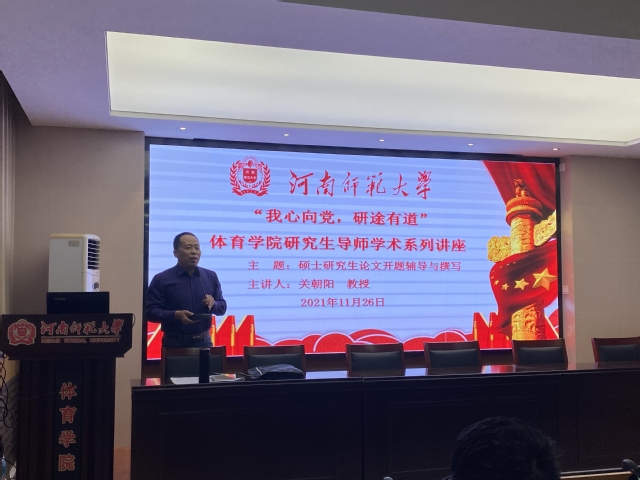 为进一步提高研究生培养质量,11月26日晚,体育学院在学院学术报告厅举行“硕士研究生论文开题辅导与撰写”的专题讲座。此次讲座特邀beat365官网学术委员会副主任委员关朝阳教授为主讲嘉宾,学院全体研究生参加学习,讲座由副院长夏树花主持。